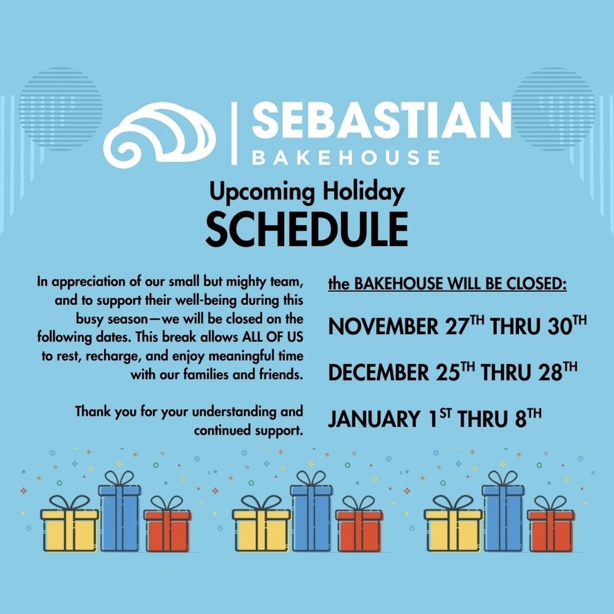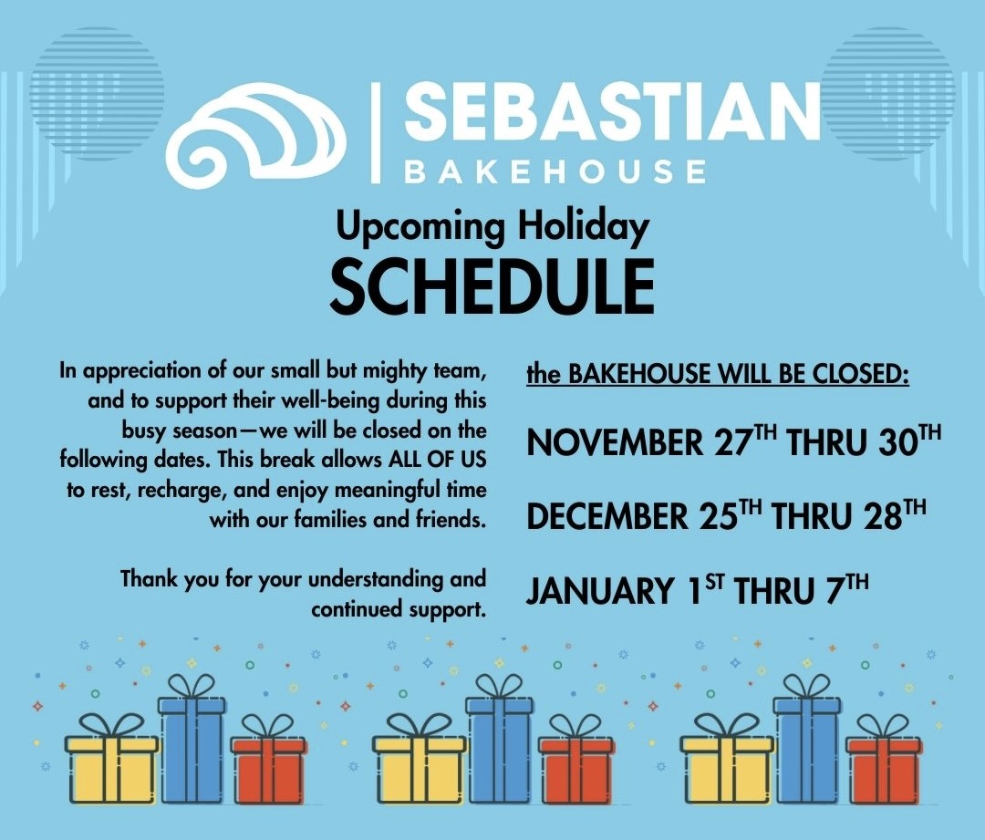 We pour our hearts into every detail here at Sebastian Bakehouse, and we can’t wait for you to savor every bite.